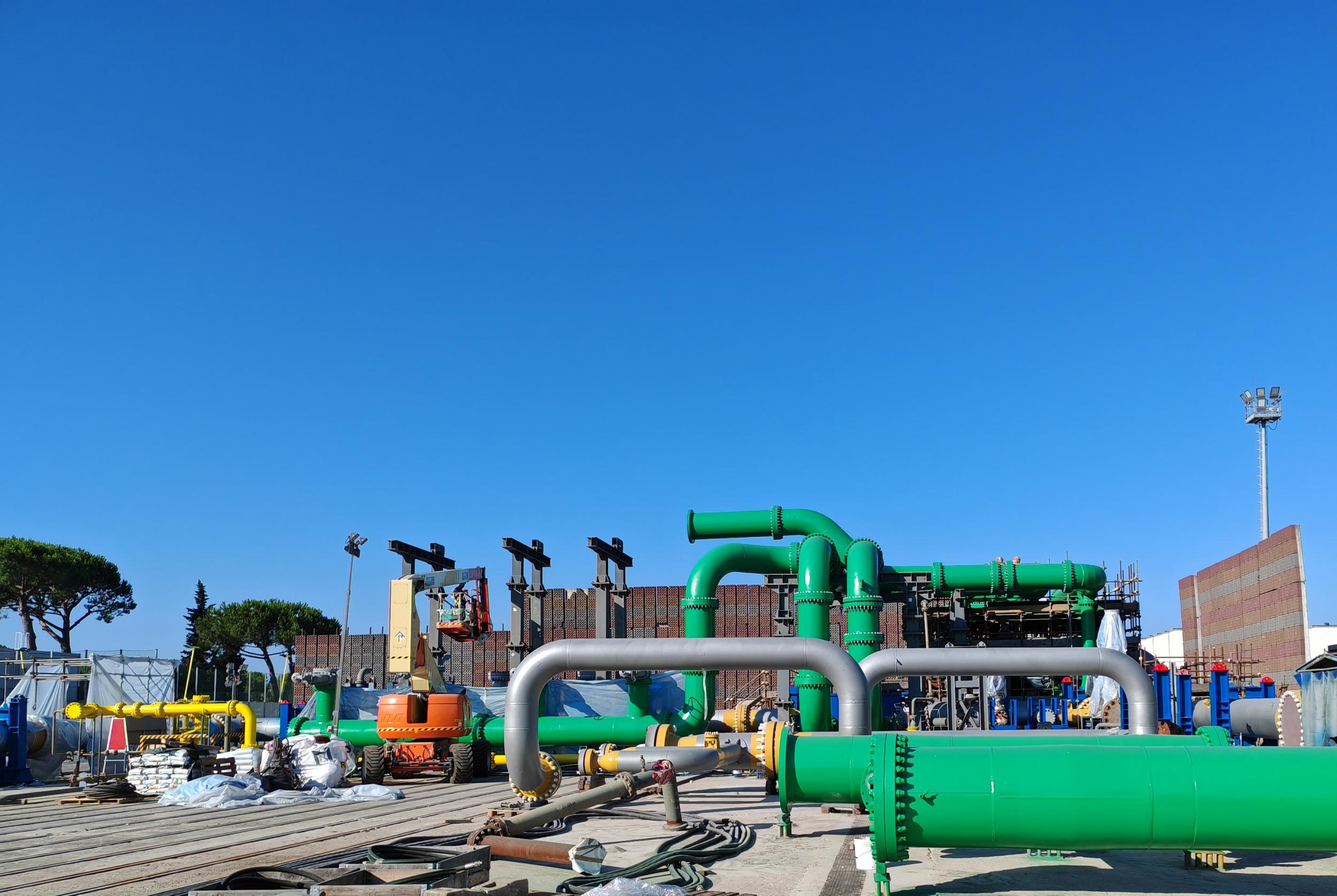 Sabbiatura e rifacimento trattamento anticorrosivo CX per sotto coibente su tubazioni costituenti il banco di collaudo "E" c/o BH Massa