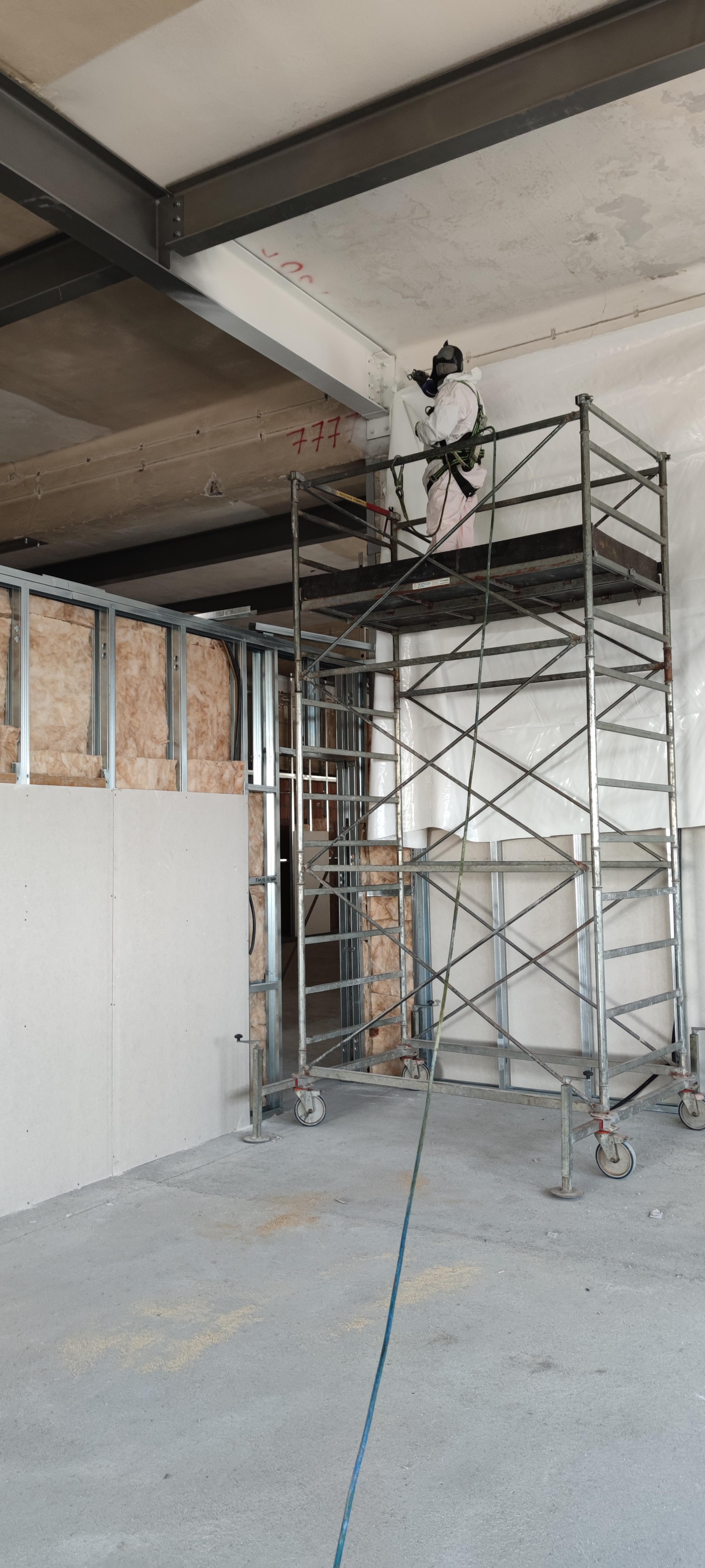 Applicazione ciclo intumescente per trattamento fireproofing su carpenterie di rinforzo strutturale edificio 24 di Massa