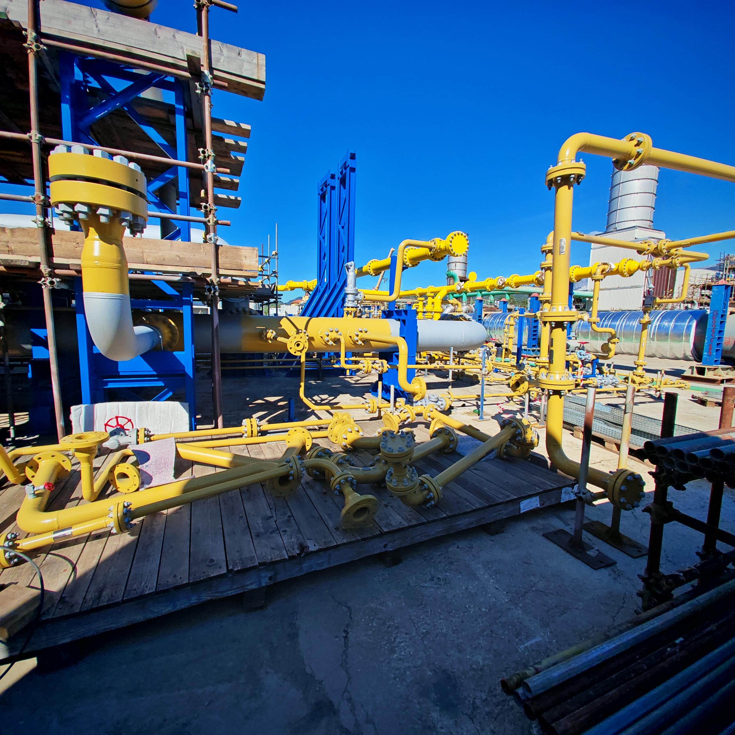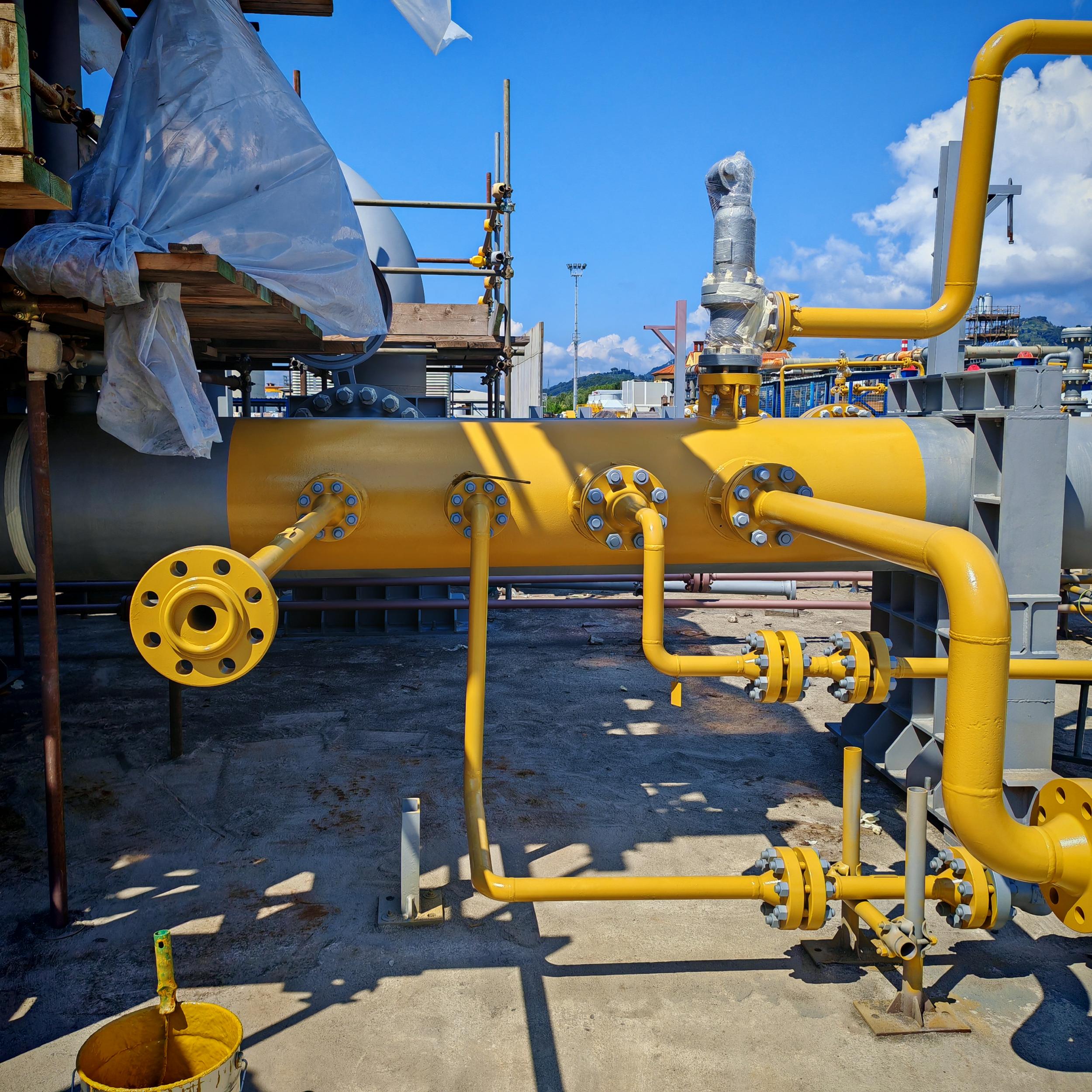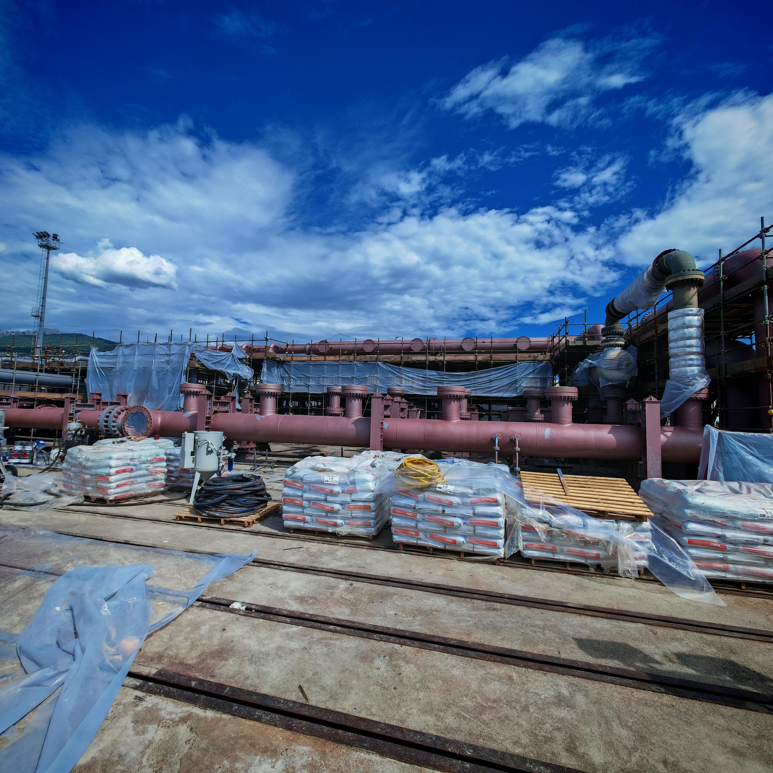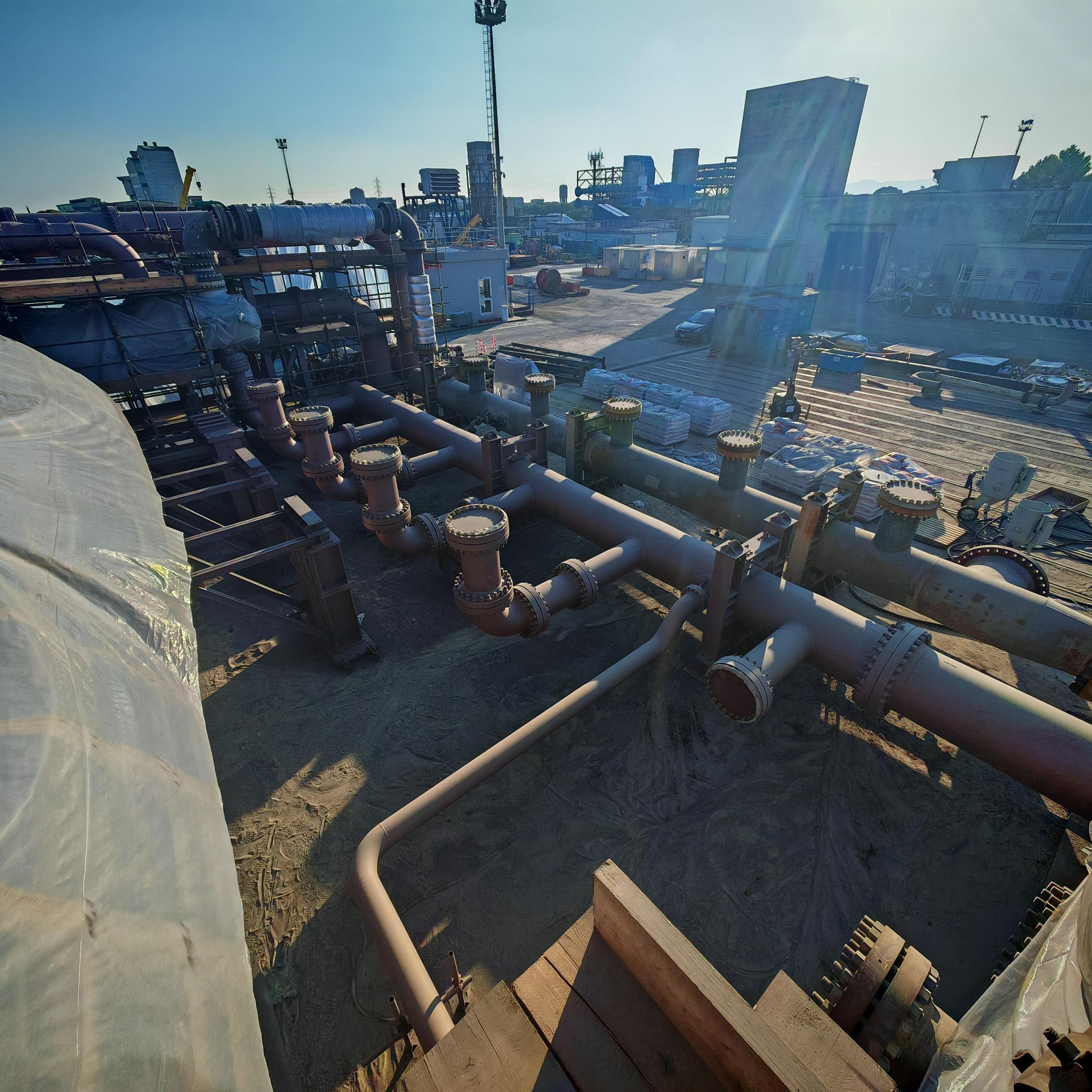 Sabbiatura con tecnica aero-hydro sandblasting, e rifacimento trattamento anticorrosivo CX per sotto coibente su tubazioni e pezzi speciali costituenti il banco di collaudo ''F'' c/o BH Massa