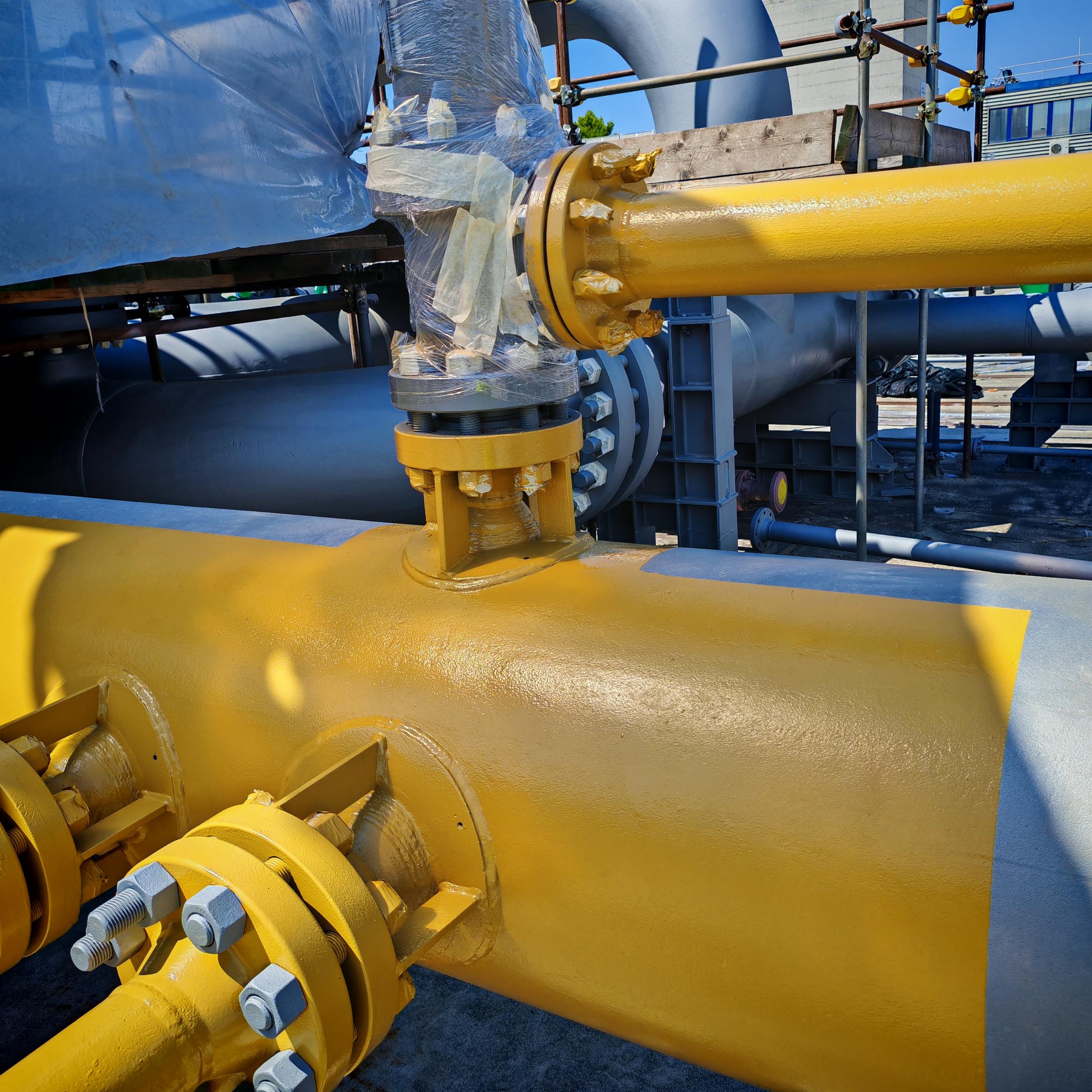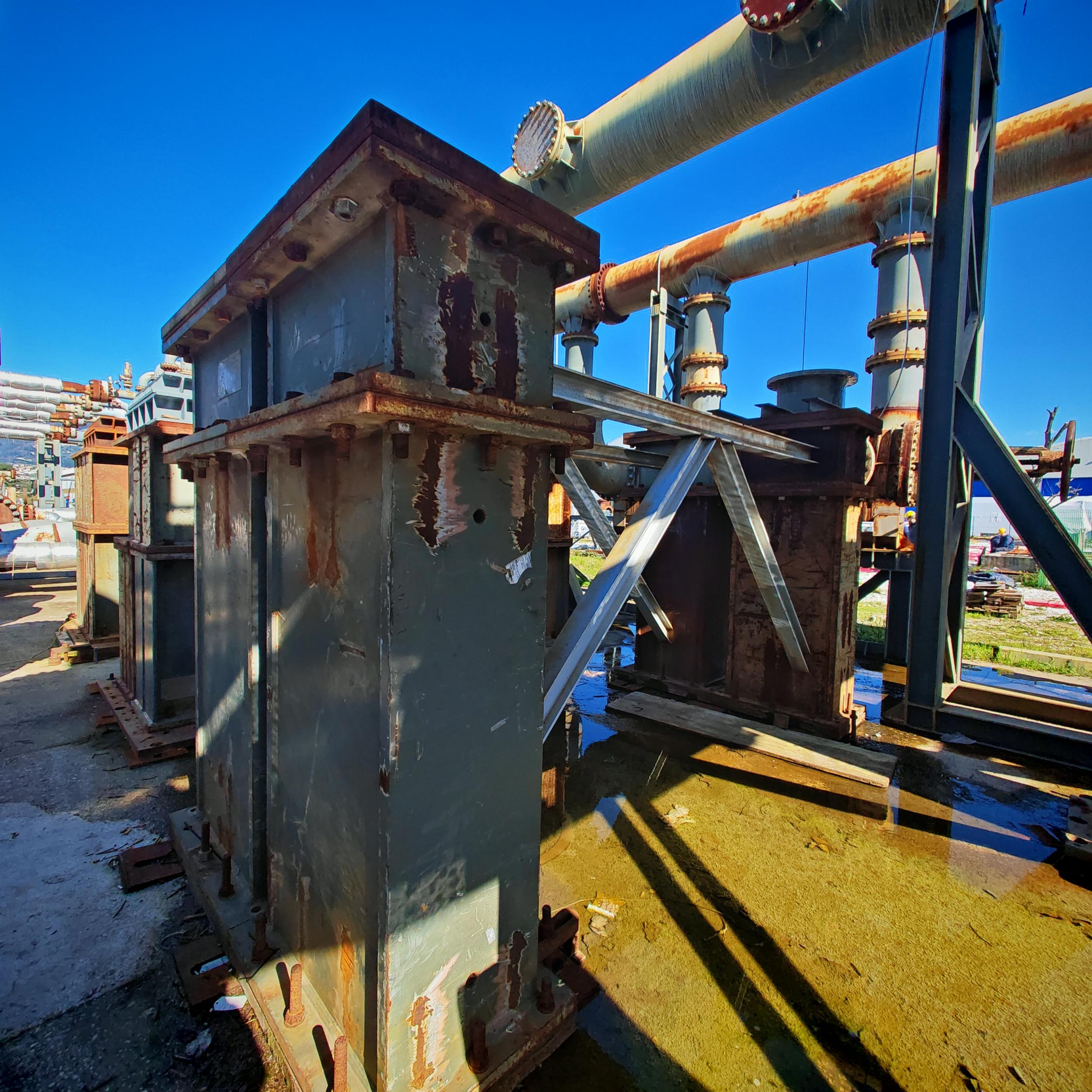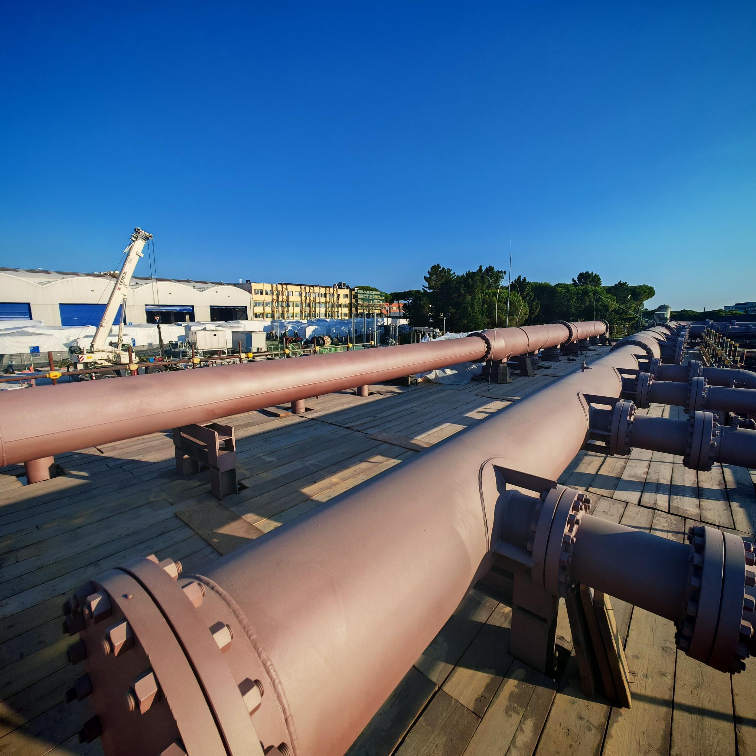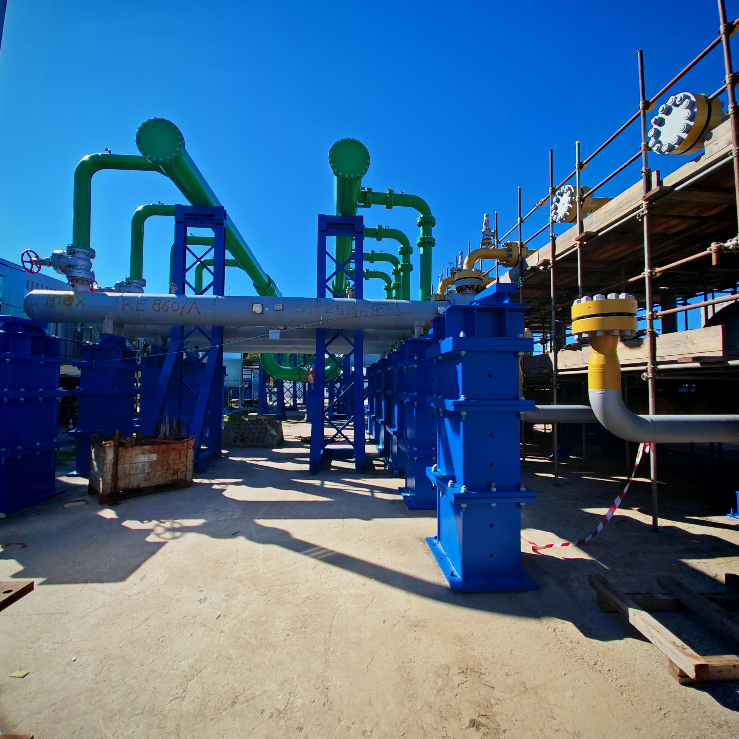 Sabbiatura con tecnica aero-hydro sandblasting, e rifacimento trattamento anticorrosivo CX per sotto coibente su tubazioni e pezzi speciali costituenti il banco di collaudo ''F'' c/o BH Massa