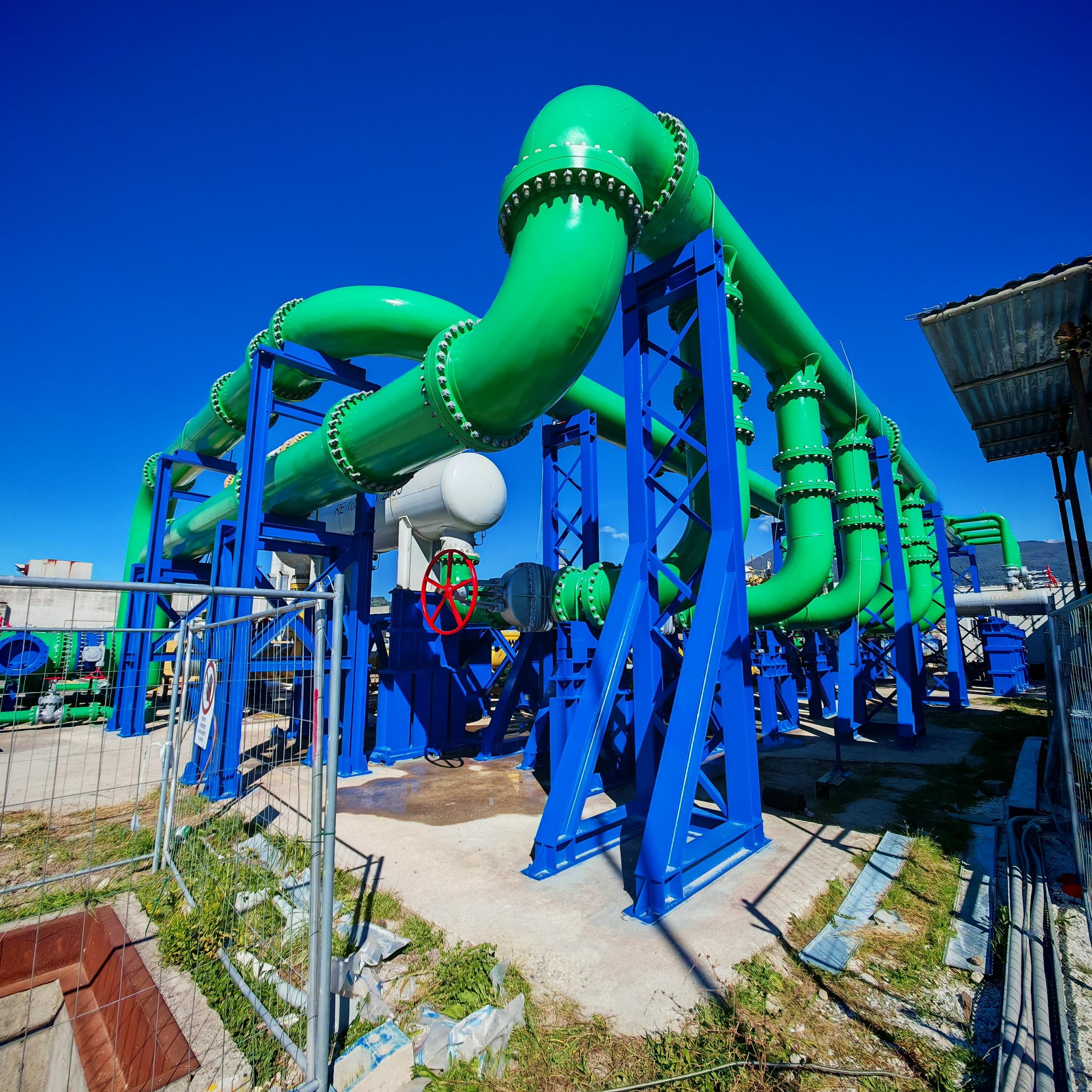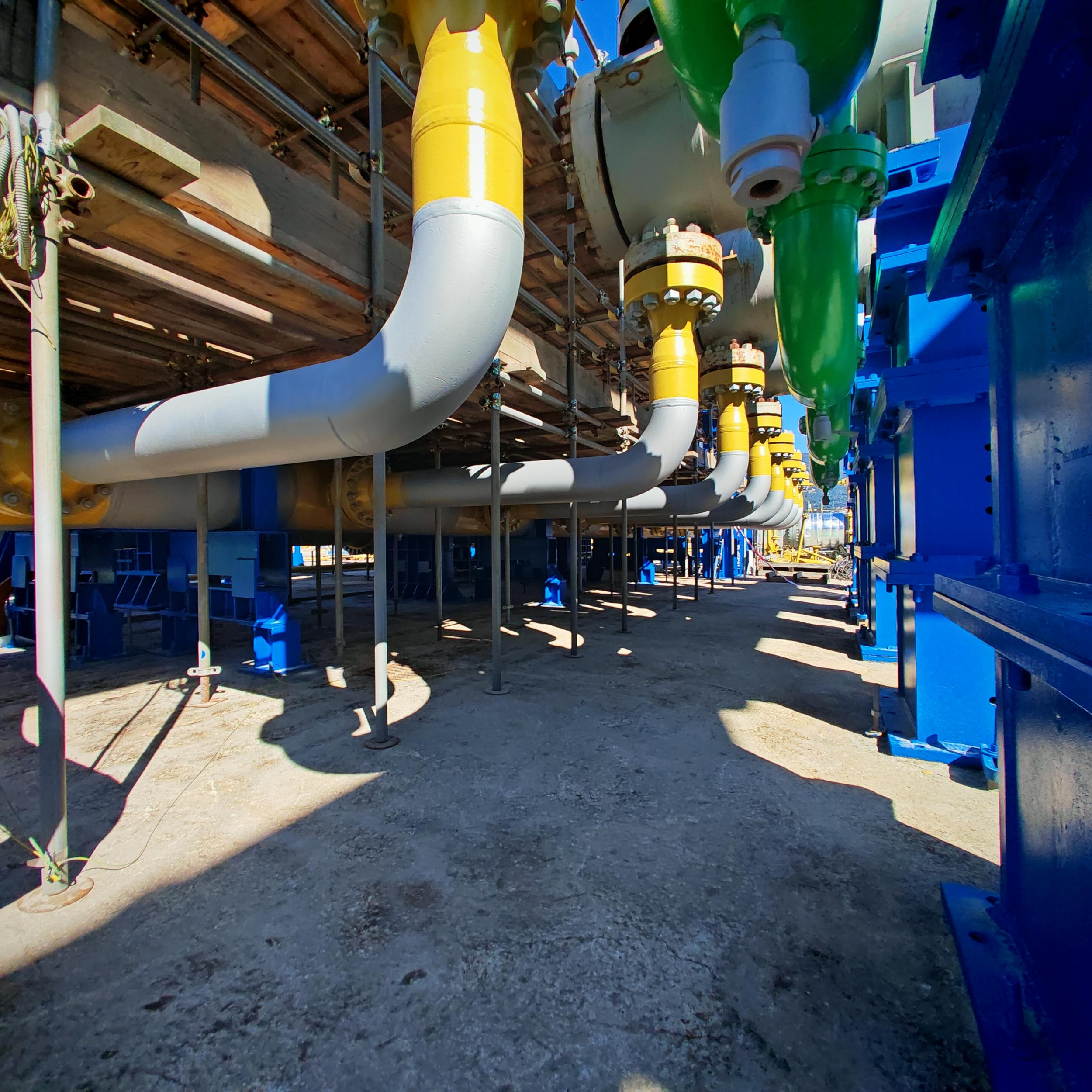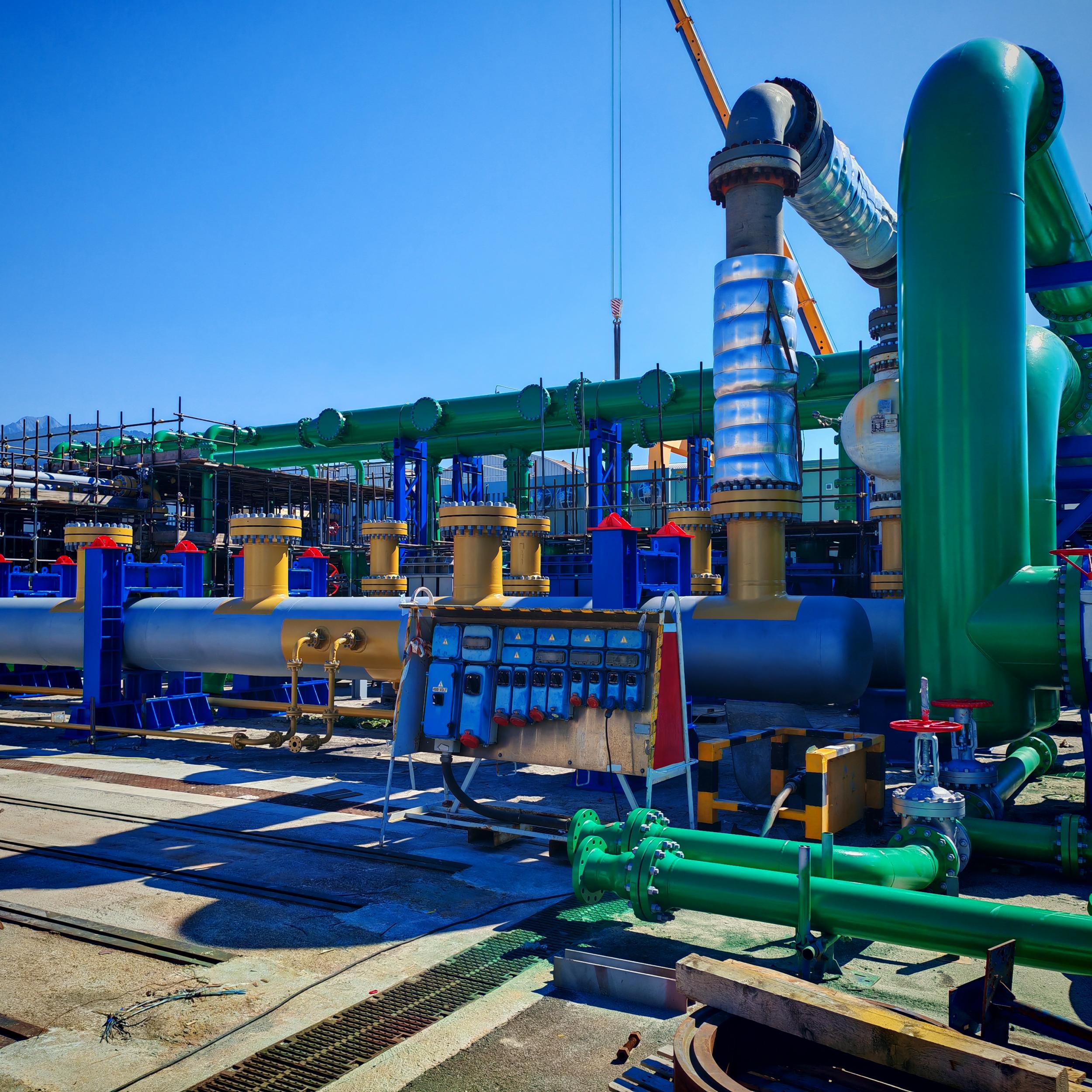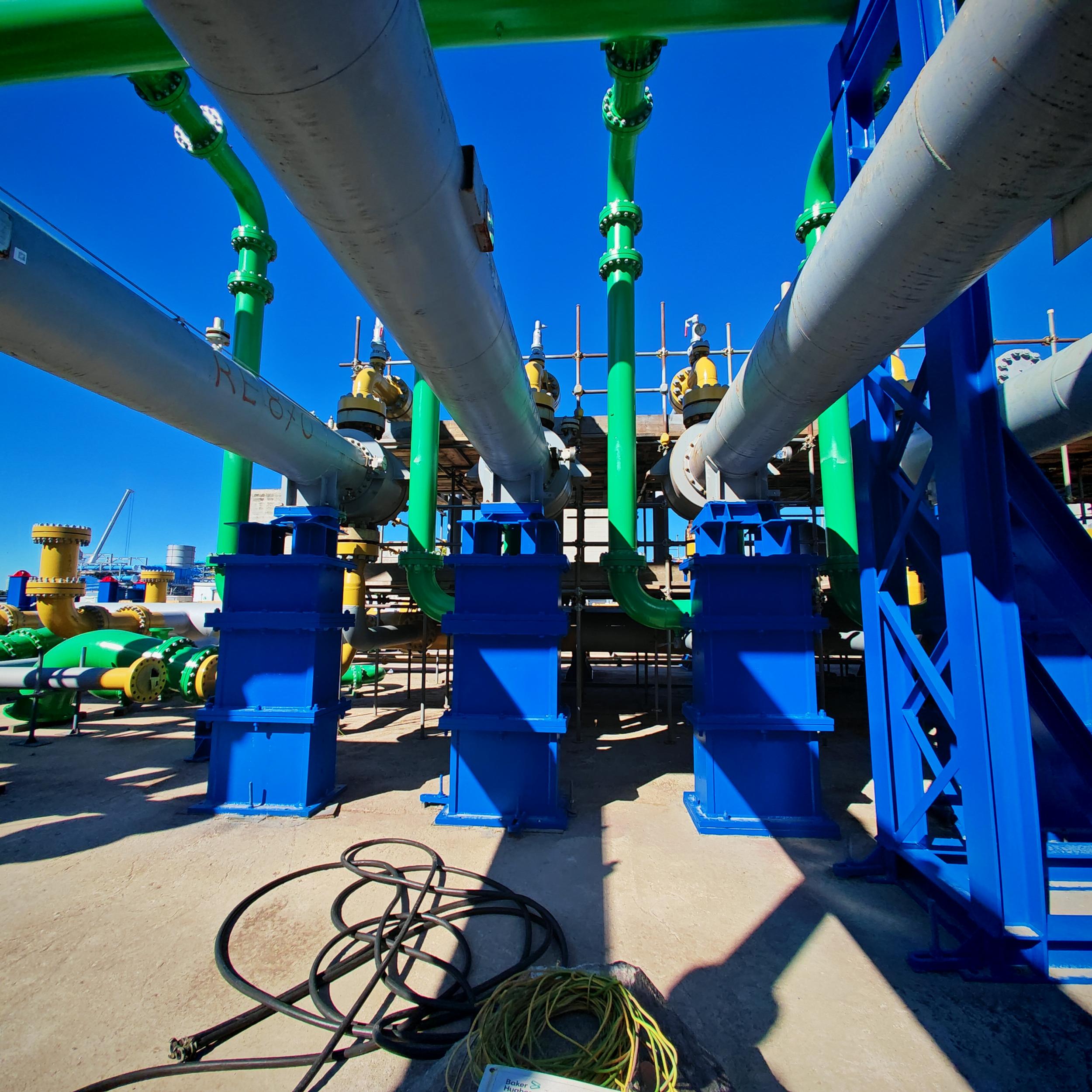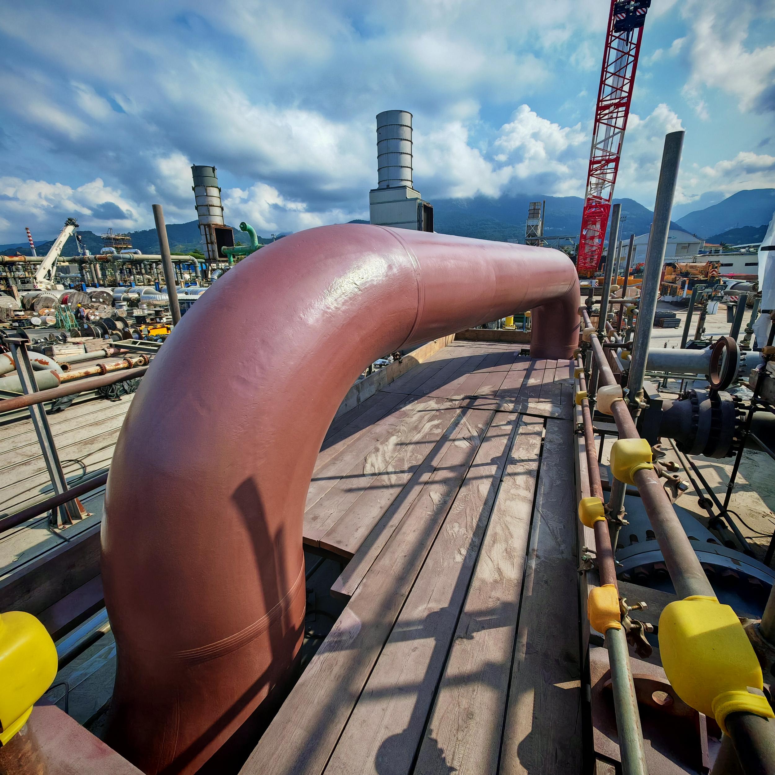 Sabbiatura con tecnica aero-hydro sandblasting, e rifacimento trattamento anticorrosivo CX per sotto coibente su tubazioni e pezzi speciali costituenti il banco di collaudo ''F'' c/o BH Massa