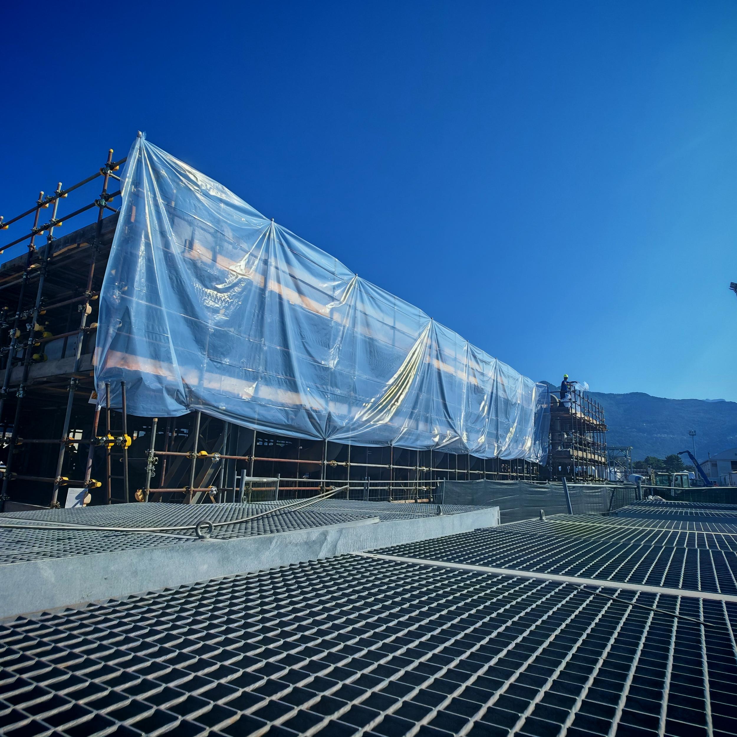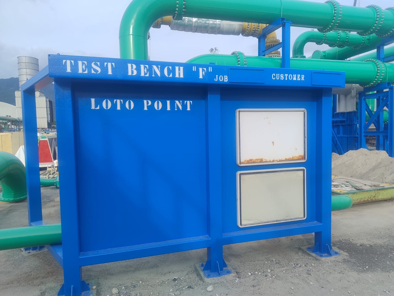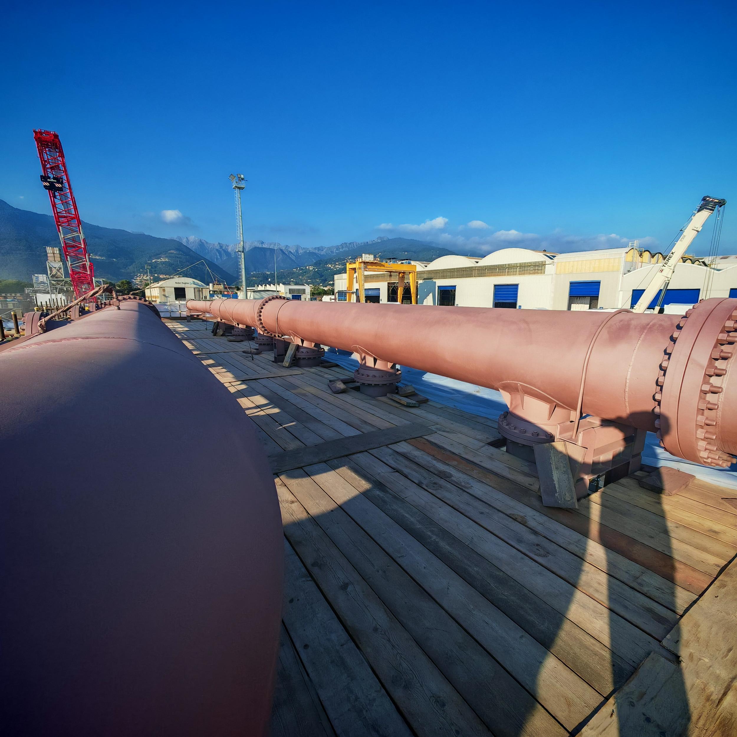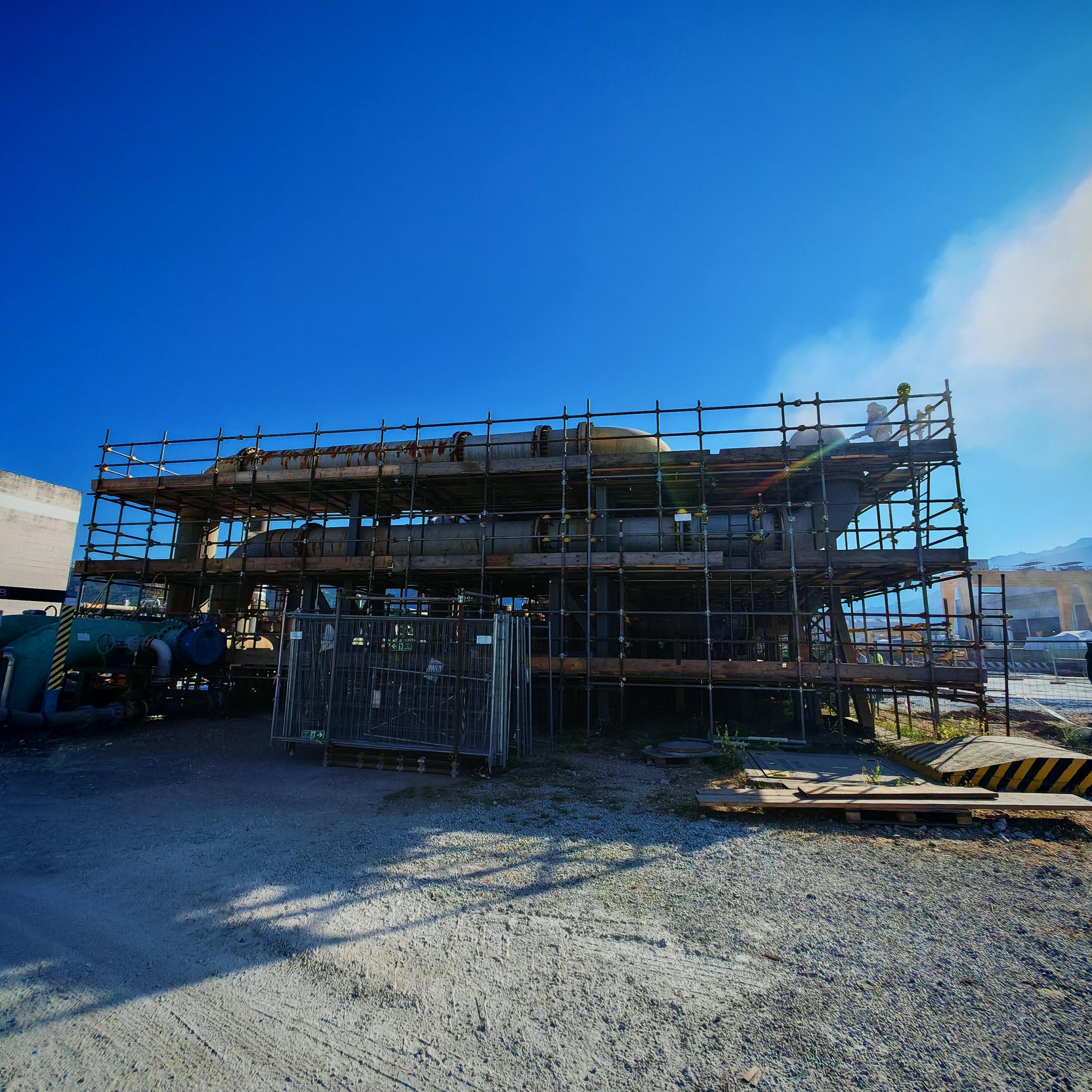 Sabbiatura con tecnica aero-hydro sandblasting, e rifacimento trattamento anticorrosivo CX per sotto coibente su tubazioni e pezzi speciali costituenti il banco di collaudo ''F'' c/o BH Massa